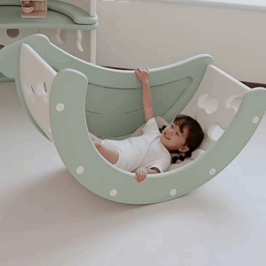 At first glance, you’ll wonder: is it a rocker, a climbing frame, a shelf, or a play table? It’s all of the above! This versatile banana-shaped rocker transforms on the fly to fit your child’s mood—and your space.