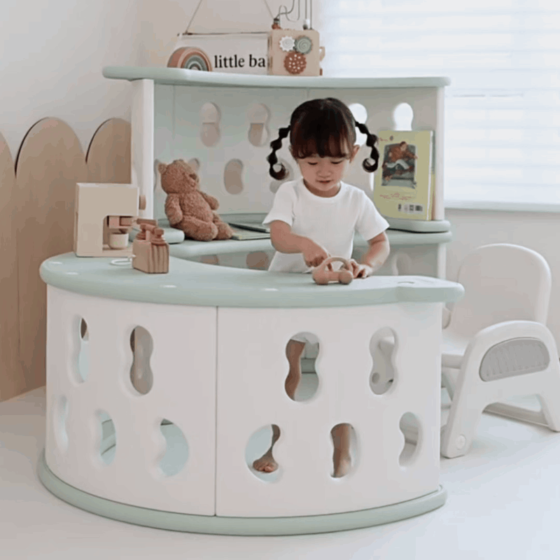 Need a table? Turn the banana curve into a stable desk surface. The semi-circular design seats children perfectly for drawing, puzzles, or snack time—then transform it right back for play.
