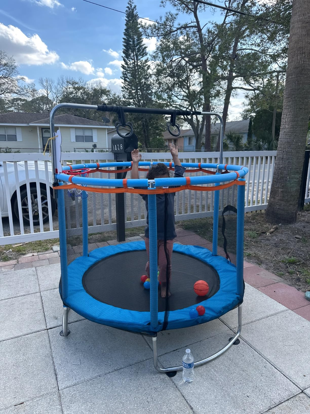 Kids never stop moving—and neither does our all-in-one Trampoline & Punch Station. In a compact footprint you get a fully enclosed bounce area plus a heavy-duty overhead bar for chin-ups, a punching bag, a hammock or climbing rope. It’s your child’s energy-release HQ.