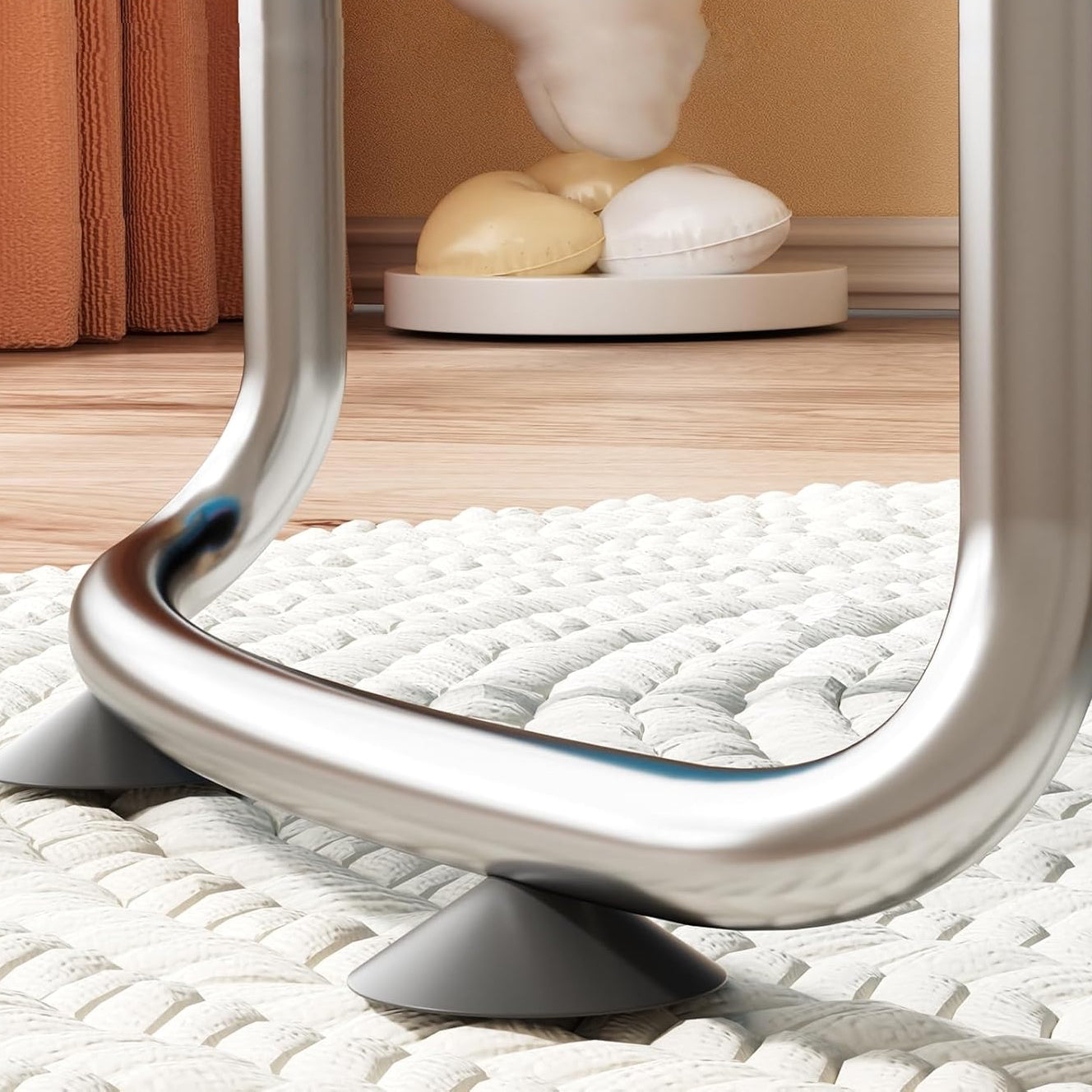 A triangular U-shaped steel base with suction-cup feet locks it firmly in place. No wobble, no wobble.