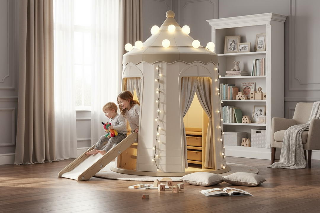 These thoughtfully designed curtains combine style with practicality, adding a touch of elegance to the playhouse while allowing for easy control of natural light. The anti-slip design ensures a secure environment, making it safe for children to play independently and confidently.