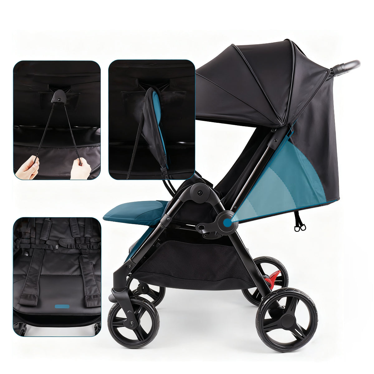 The rear seatbacks feature a simple clip-and-adjust mechanism: tilt upright for sightseeing, or recline fully for a cozy catnap. Either way, your twins stay comfy whether they’re people-watching or catching Z’s.
