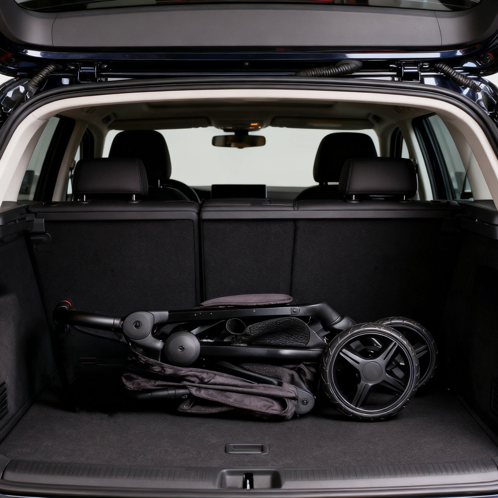 Folds in a snap with one click and fits right in our SUV trunk.