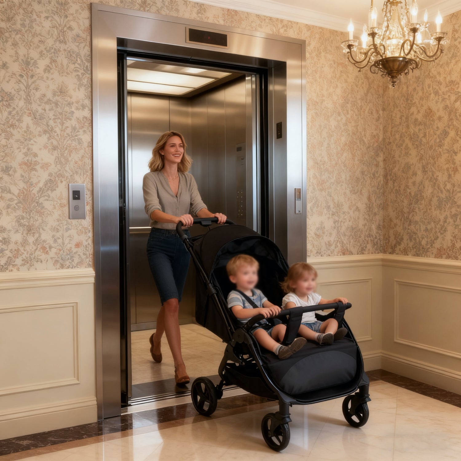 At just 27″ wide, it glides into our apartment elevator every time.