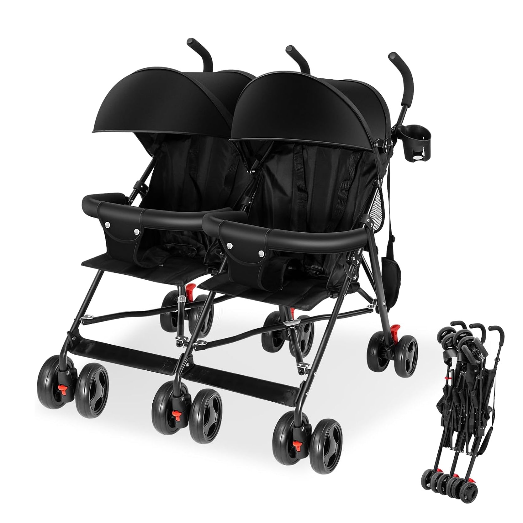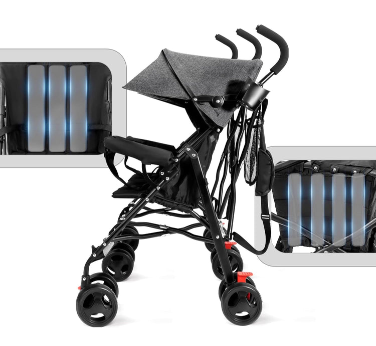 Ready to roll in seconds: simply pull up to unfold, snap down the twin support bars under each seat, and you’re good to go. No wrestling with bulky frames—just smooth, speedy setup.