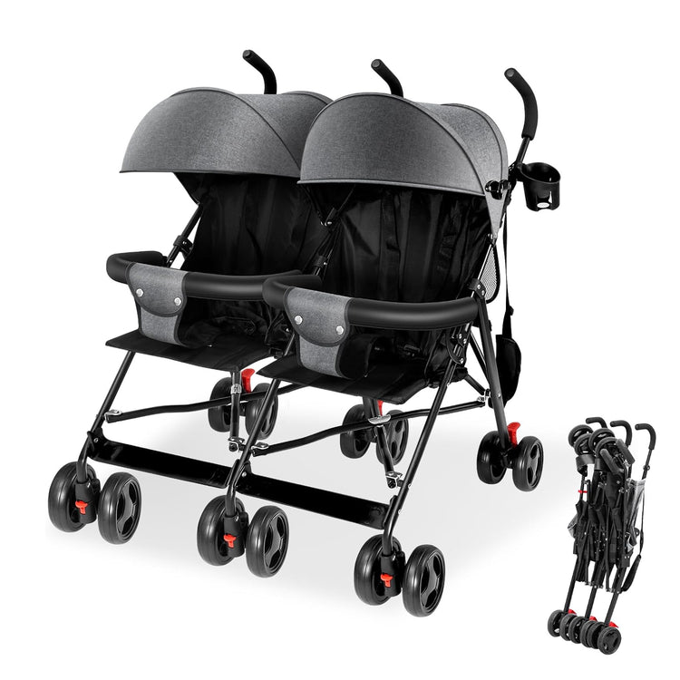 Ultra-light 12 lb twin stroller folds in just two steps and straps over your shoulder for true hands-free ease. 360° swivel wheels with dual suspension and five-point harnesses deliver a smooth, secure ride, while the removable, machine-washable canopy and built-in cup holders keep shade and snacks within reach. Ready for fuss-free family outings? Snag yours today!