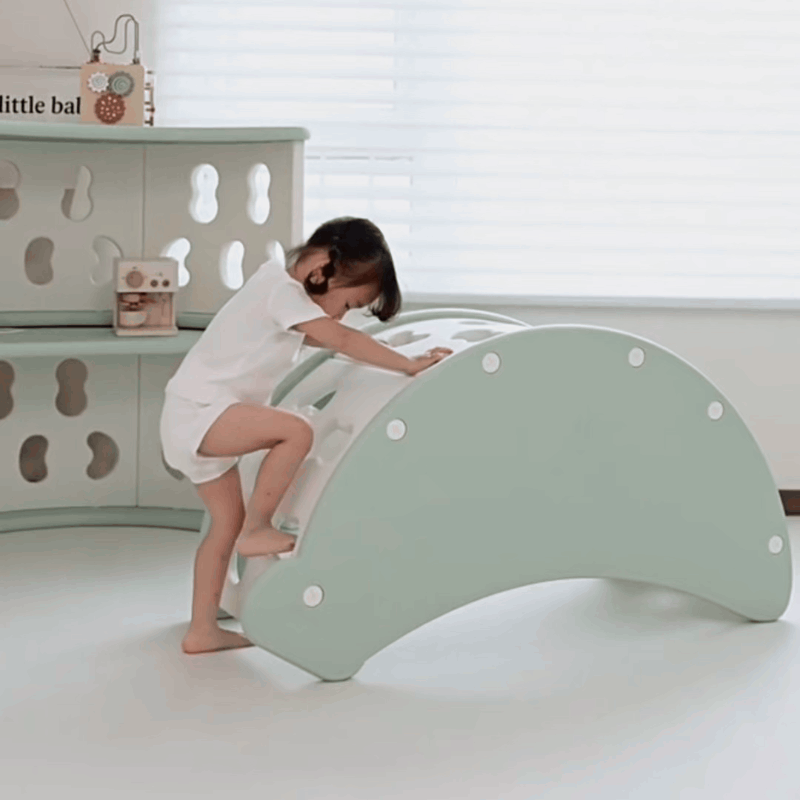 Ready to climb? Simply flip it over and let your child tackle the ergonomically placed grips. The gentle curve and sturdy HDPE construction support confident climbs and smooth transitions during their active developmental stage.