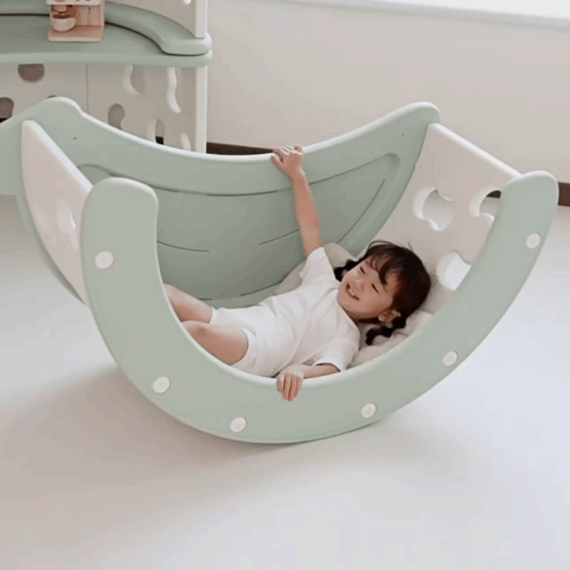 At first glance, you’ll wonder: is it a rocker, a climbing frame, a shelf, or a play table? It’s all of the above! This versatile banana-shaped rocker transforms on the fly to fit your child’s mood—and your space.