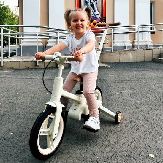 Our clever 3-in-1 design adapts to every skill stage: start with pure balance, add removable pedals when they’re ready to pedal, then fold-away training wheels for two-wheel independence.
