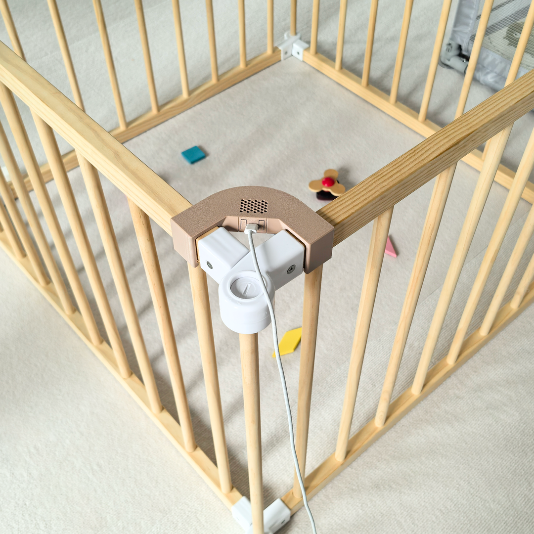 Crafted by the same engineering team at HappyGira, the Baby Cry AI Monitor integrates seamlessly with all HappyGira playpens. Its durable mounting bracket ensures a secure, corner fit, providing a clear, unobstructed view of your baby. Equipped with advanced AI-powered computer vision, the monitor not only alerts you when your baby cries but also intelligently analyzes the situation for safety, offering peace of mind with every glance.